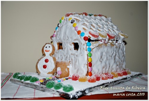 Há uns anos atras fiz a casa de gengibre, uma verdadeira brincadeira de criança. Foi difícil encontrar a receita e acertar nas medidas das bolachas para montar a casa no final. Tudo nesta casa é feito de açúcar e tudo é comestível, a lembrar a casinha de chocolate do conto tradicional. Para mim foi como realizar uma obra de arte, acho que qualquer dia quero repetir...